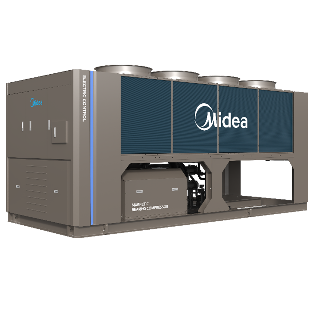 AIRBOOST-MAG Product Details AIRBOOST-MAG Midea AirBoost MAG air-cooled magnetic bearing centrifugal chiller utilizes patented magnetic bearing technology. In addition to being highly efficient, stable and reliable, it features a wide