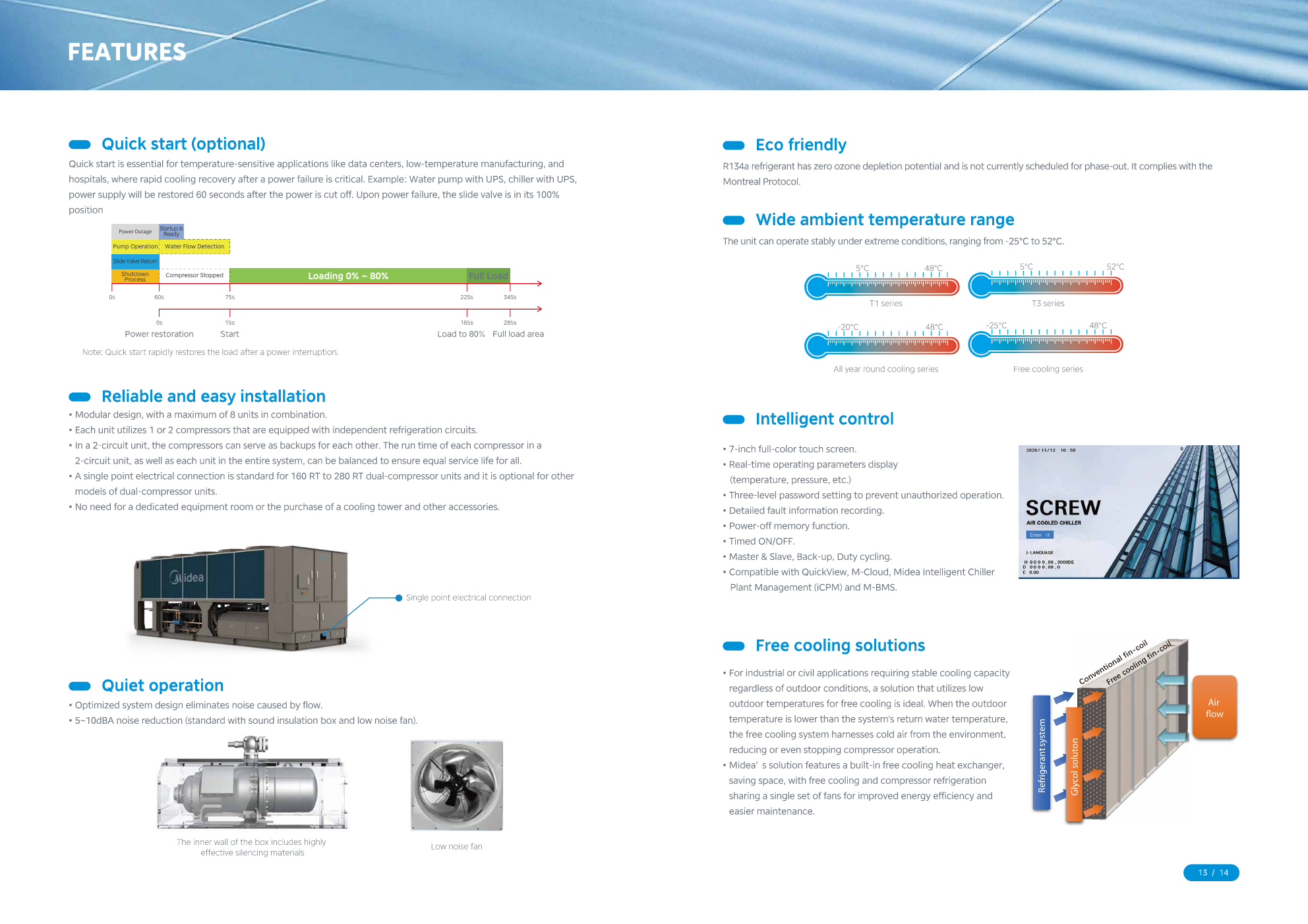 AirBoost air cooled screw chillers are engineered for peak efficiency across all operating conditions. With quick-start and low noise levels, it’s an ideal solution for large and medium-sized commercial, civil, or industrial buildings, as well as data centers and temperature-sensitive environments like pharmaceutical labs, hospitals, and manufacturing facilities with constant cooling needs. The low noise operation ensures minimal disturbance to occupants in guest rooms or meeting rooms.
