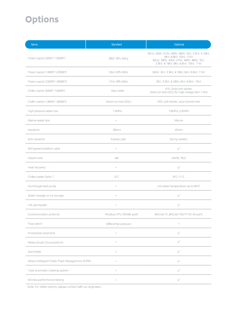| Midea offers a comprehensive lineup of chiller products designed to meet a wide range of customer requirements. Key milestones include the 2013 launch of the full falling film two-stage compression centrifugal chiller and the 2019 introduction of the 2300 RT to 3000 RT water-cooled centrifugal chiller, specially designed for district cooling applications. These units are ideal for applications with large temperature differences and are suitable for large-scale public buildings such as factories, airports, exhibition halls and theaters. The 2300 RT to 3000 RT units consist of a single two-stage compressor centrifugal chiller, while the 4600 RT to 6000 RT units feature two two-stage compressor units arranged in a series counterflow configuration. Our patented heat exchange technology reduces refrigerant amount requirements, significantly lowering CO2 emissions and protecting the environment. |